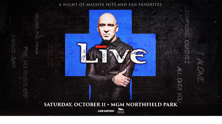 Enjoy a night of massive hits and fan favorites when Live comes to MGM Northfield Park on Saturday, October 11 at 8:00 PM! Hear such gems as “Lightning Crashes,” “I Alone,” “All Over You” and “Lakini’s Juice,” and many more! For complete show details and to purchase your tickets, click HERE starting Friday, August 1 at 10:00 AM!